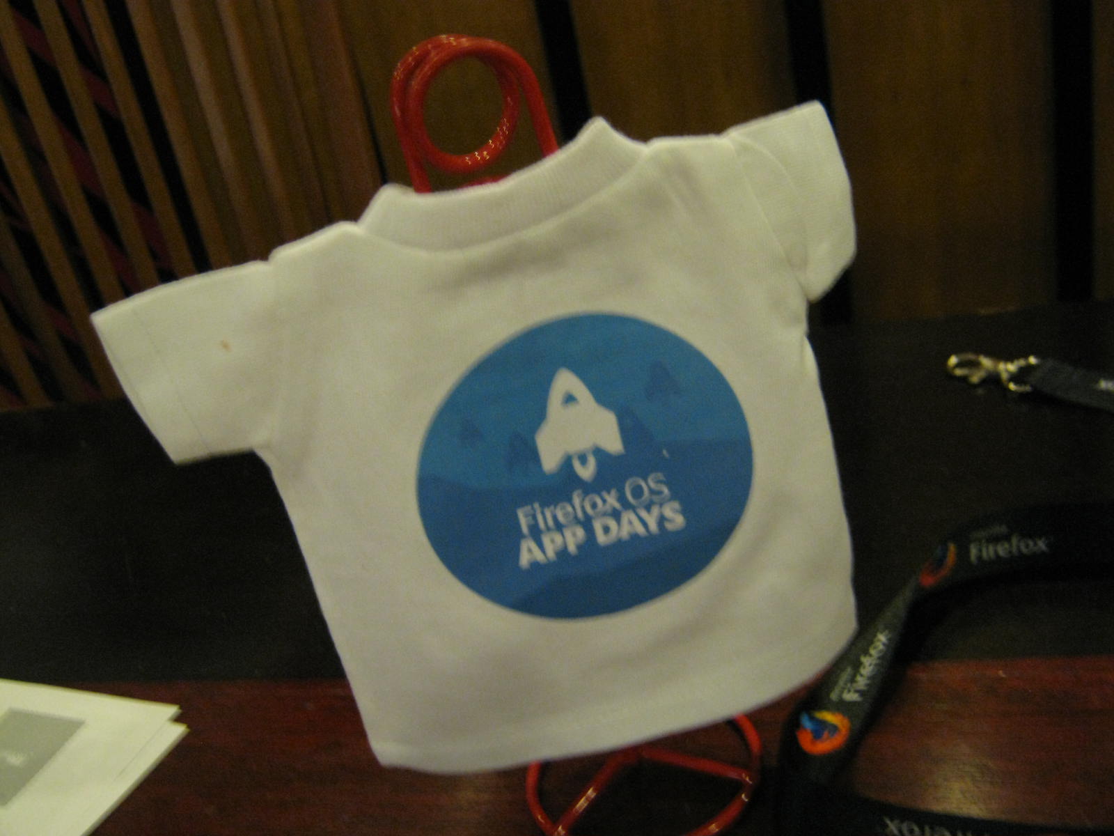 Everybody went home with a swag bag (with some stickers and a usb drive inside) and a “limited edition” Firefox OS App Days shirt courtesy of Mozilla.